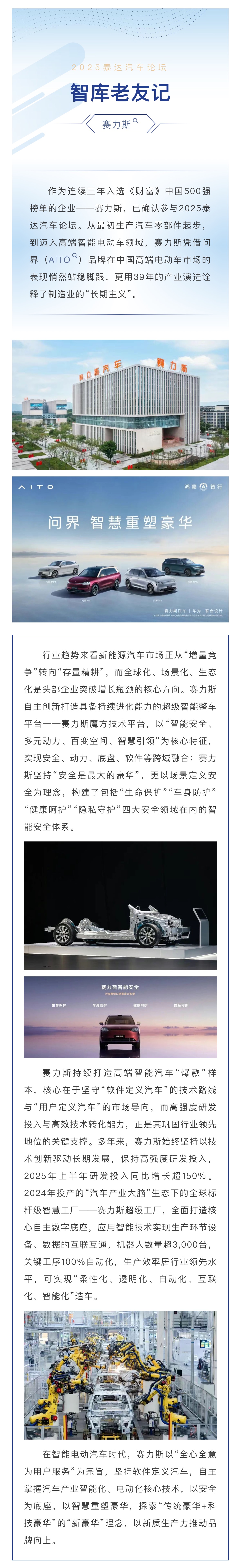 【智库老友记】赛力斯确认参与2025泰达汽车论坛
